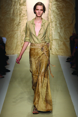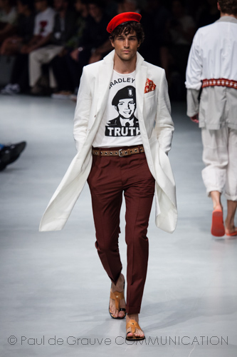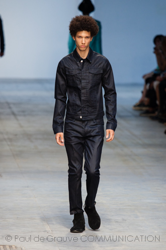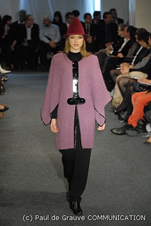 A man who likes change and dares with eccentric touches, to reshape classical forms: examples are overcoats finished with large knitted shawl collar or a fur biker jacket.