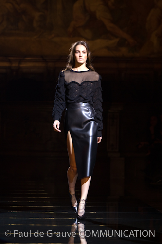 Fabrics’ nobility is very fine, from knotted wool with a three-dimensional or carded finished, mink punched with textures of precious yarns and cashmere garments enriched with leather inserts.