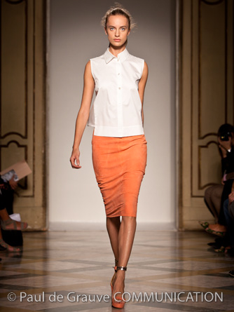 Obviously Aldo Coppola made also the hair styling. As trending right now, hair are left really natural and soft. There is no excess of hair straightener, but a natural straight hair with a bit of volume in order to give more life to the hair. To complete the hair style: a super-classic centre parting, which is always remarkable for its being simple and essential.