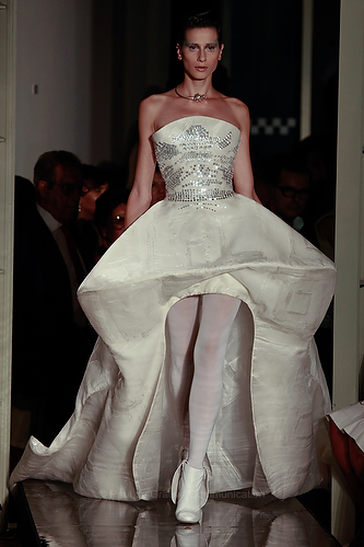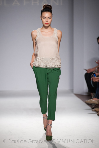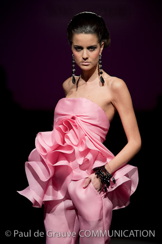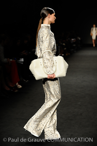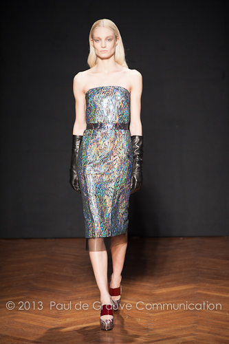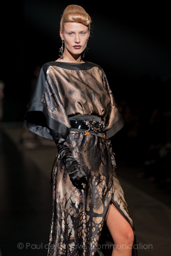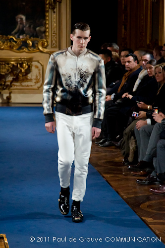 At the end of fashion show a change of style: it’s staged elegance, on the catwalk appear models with fur caps to sophisticated tuxedo, embroidered with flowers.
