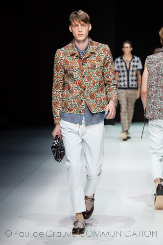 Warmth through materials: coats and cabans in vivid leather, cotton with tech nylon . Classic cut Jackets and pants in kid mohair , sweaters with palm-tree , surf , speeding car designs. Lastly the night taxis prints all over the shirts.