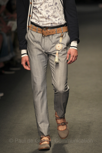 Phisicality through the sleeveless shirts and henleys, classic unbottoned shirts worn under classic cut jackets, white or stripe shorts or in gray kid mohair worn with white sandals and nude kneesocks.
