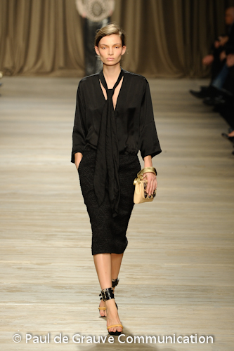 Everything is black in this collection, also the precious materials like crocodile, used for jackets and trousers.