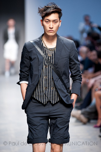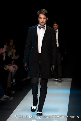 A phone ringing and a voice says ”Hello”, music starts and models appearing on the catwalk. In this way the designer John Richmond begins the fashion show for Milan Fashion Week.