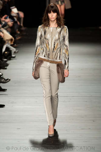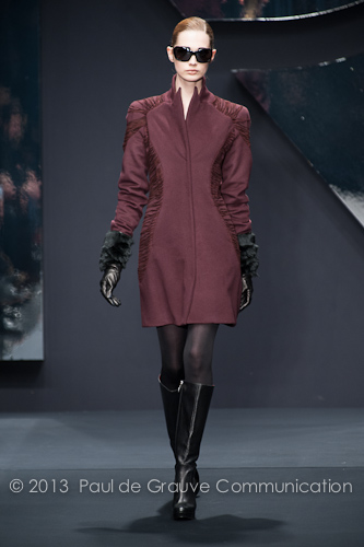 Different fabrics: mohair, neoprene and leather for the day, silk and new soft textures for curvy dresses, illuminated with paillettes and gleaming crystals for night.