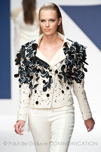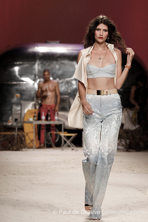 Ad una collezione così ricca di particolari corrisponde una vasta scelta di materiali: più “grezzi”, come cotoni naturali, tele di lino, cady, crepe, pelle e camoscio; più preziosi ,come sete, satin, organze e tulle.