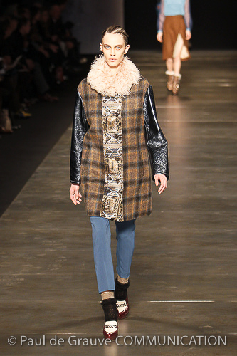 Gli accessori sono preziosi e sofisticati, come i gioielli, piccole miniature di animali in cristallo di rocca e smalto colorato, occhiali da aviatore con paraocchi in pelle di serpente e scarpe con tacco a stiletto ad effetto armatura i cui lacci arrivano fino al ginocchio.