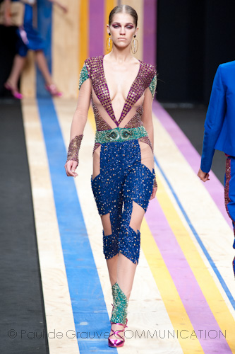 The makeup look is by Lucia Pieroni for MAC Cosmetics. The basic concept is a healthy glow look with a golden hue. There is a very luminous skin with a dewy finish, almost a wet-look. She used only a little bit of foundation with a weightless texture. Then there is some powder makeup: bronzers have the most fine-milled texture, then a golden highlighter enhances all that luminous focuses like cheekbones, browbone, Cupid’s bow, bridge of the nose etc.