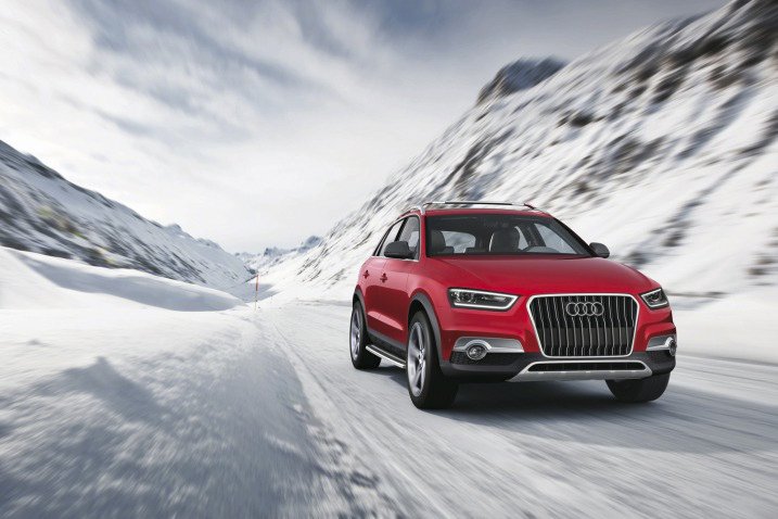 Il Q3 Vail presentato al salone di Detroit in Gennaio, mosso da un 2.5 cinque cilindri turbocompresso di nuova generazione e dotato di trasmissione “Quattro”, verniciato in “Energy Red”, combina un forte carisma con uno stile sportivo. All’esterno gruppi ottici con tecnologia led, xenon e sistema di illuminazione dinamica uniti a fanali di profondità a led montati sulla barra portasci anteriore e fendinebbia, rendono visibile ogni ostacolo anche nell’oscurità più totale, protezioni in plastica grigia e cromo proteggono la parte bassa della carrozzeria,il doppio scarico posteriore e gli specchietti dalle asperità.