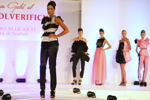 Ovviamente la concentrazione della serata è stata data alla “Moda” legata al tema della solidarietà e in particolar modo del made in Italy: Alviero Martini ha presentato nuovamente la sua collezione “ALV- Andare Lontano Viaggiando” dopo averla fatta sfilare al recente “Premio Via Margutta, La Via delle Arti 2011″, l’eleganza dell’Alta Moda dello stilista, con sede a Pompei, Nino Lettieri, presente tra l’altro alla scorsa edizione di AltaRoma, e l’Alta Moda Spose con la firma della stilista di Scafati Michela Elite. Come durante il “Premio Via Margutta, La Via delle Arti 2011″ anche qui abbiamo assistito al conferimento di premi legati all’arte e alla cultura. “Premio alle Arti Città di Scafati” giunto alla sua prima edizione ha visto premiati nella Sezione Moda Alviero Martini, testimonial e socio onorario soprattutto di Care & Share, associazione Onlus che si occupa infanzia abbandonata in India, a Wijaiawada, nello stato dell’Andrah Pradesh.