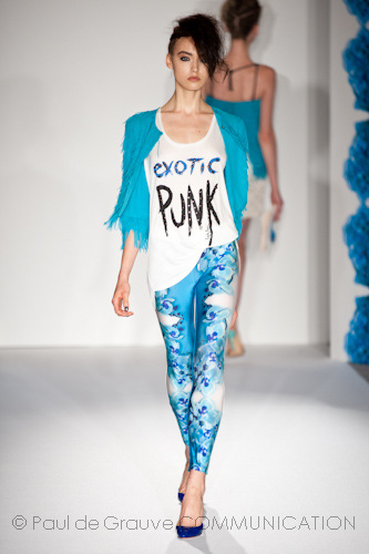 Una collezione che ama mixare quella proposta da Paola Frani per la prossima stagione estiva : esotica e punk, sofisticata ed essenziale allo stesso tempo. Mescolanze di tessuti, di colori e di volumi concorrono a rendere inconciliabili gli stili, ma solo in apparenza : nell’insieme il gioco di accostamenti è armonioso ed equilibrato. Mini abiti che fasciano il corpo si alternano ai volumi leggeri dei boy-fit shirt in batista e ai maxi dress dai tessuti impalpabili. Linee morbide anche per le t-shirt in seta, per gli short e per i pantaloni larghi multistrato dalle consistenze leggerissime.