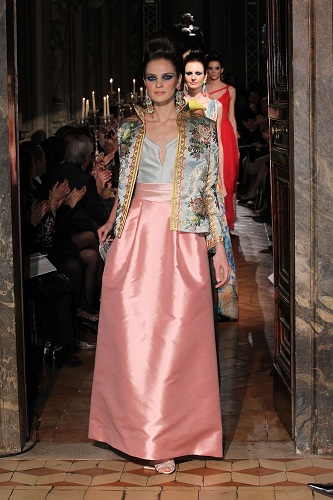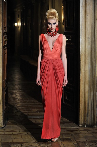 L’evento ha avuto luogo a Roma, nel cinquecentesco Palazzo Sacchetti, location che valorizza nel miglior modo possibile i 58 modelli di questa stilista eccezionale senza “mangiarne” la magia.