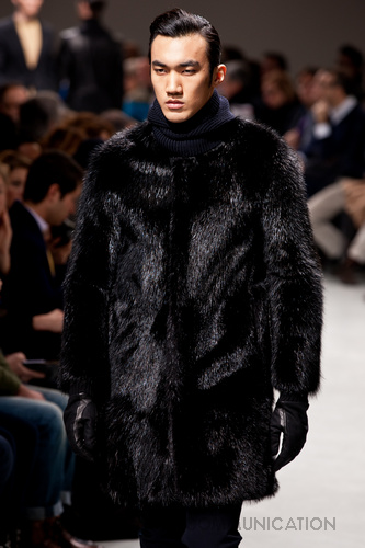 Come già detto per altre sfilate, la parola d’ordine “mixare” torna prepotente anche su questo palcoscenico, con giochi di materialità e sovrapposizioni nuove tra materiali tecnici, pellami pregiati e ricche lane. Molto interessante l’effetto caldo freddo creato da queste contrapposizioni. Tutti i materiali presenti sono cachemire, pelle, lana, nylon, tessuti tecnici, gabardine, lurex e pellicce. Dal lato dei colori invece di mix nemmeno l’ombra, colori classici come (non) neri, blu molto scuri e verdi fumosi sono la tradizione del brand.