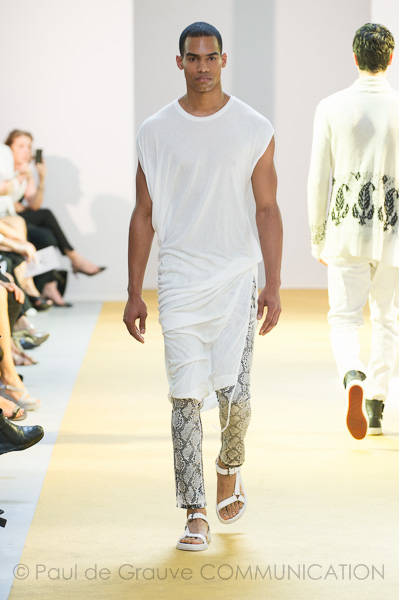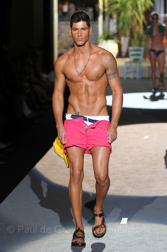 Probabilmente gran parte, o magari tutta, della nuova collezione presentata dai gemelli Dean e Dan Caten. In passerella hanno sfilato infatti frizzanti, come da tradizione, abiti per tutti i gusti e per tutte le esigenze. Un salto a fotografare i suggestivi scenari offerti da paesaggi scandinavi? No problem, un bel berretto di tricot calato bene sulla testa, giaccone, jeans – ma ai più audaci è consentito persino il calzoncino corto- e l’uomo del 2012 è pronto alle più gelide temperature. Un volo verso Mykonos per coltivare la tintarella? Basta aprire la valigia e recuperare gli striminziti costumi da bagno dalle tinte forti (simbolo che il color blocking resisterà all’inverno? Forse si, anche se DSquared2 puntava sul colore già in tempi non sospetti) con rifiniture patriottiche per conquistare letteralmente un posto al sole complici i teli a contrasto, a patto che si possa sfoggiare un adeguato fisique du role.