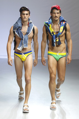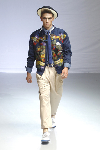 Uno stile in cui domina il contrasto: i completi formali vengono smitizzati con un “tocco sportivo”. Tessuti morbidi e leggerissimi, rigorosamente naturali, si tingono di blu e bianco, ravvivati dal rosso, giallo o verde dei dettagli.
