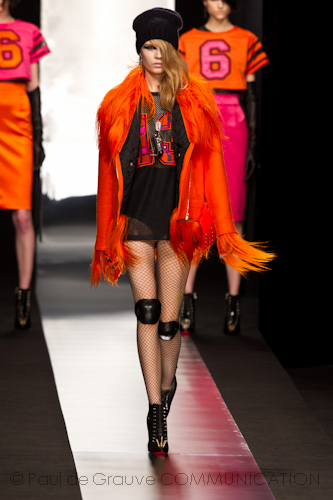 I colori sono quelli accesi degli anni 80: arancione rosa e tanto nero. I materiali pelle, pelliccie setae raso.