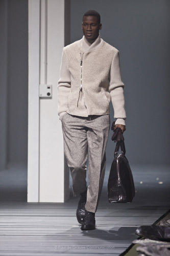 Forme asciutte nell’abito formale, con pantaloni affusolati e giacca morbida, allungata. I colori vanno dal grigio antracite al cammello, dai neutri al rosso granato. I cappotti sono decisamente maxi, avvolgono la figura con morbida alpaca. Caban che si ispirano allo sportswear con l’aggiunta di un tocco glamour : il doppio rever in materiali a contrasto, pelle e camoscio, nappa e jersey bouclè. Anche un capo dal gusto rock come il chiodo è reinterpretato in chiave elegante, grazie agli inserti in camoscio.