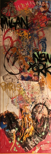 I temi rappresentati sulle sue tele sono quelli della vita reale, “Le mie tele nascono spesso da un acuta osservazione della realtà e in questo caso sono stato attratto dai mutamenti di Milano nel periodo che precede le elezioni. In particolare sono rimasto affascinato dalle numerosissime affissioni di pubblicità dei partiti che inondano muri, cartelloni e mezzi pubblici, creando un gioco caotico di colori e strati cartacei molto interessanti” (Fungo). E così appare Milano, da “Milan Vote” ovvero l’invasione della città dei cartelloni delle campagne elettorali ad “After Election”, il post elezione, dove i cartelloni vengono abbandonati creando una sorta di stratificazione pubblicitaria.