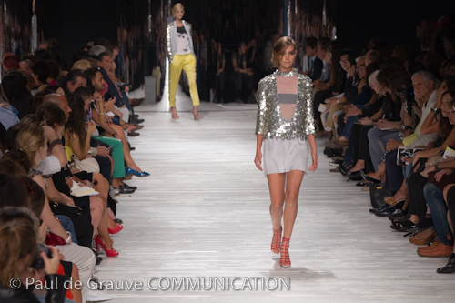 I volumi si riducono per gli abiti, che sono corti e sensuali, abbinati a giacche destrutturate, o lunghi e aderenti, arricchiti da mini gilet in pelliccia. Le stampe, elemento distintivo della Maison Cavalli, si ispirano agli abiti tradizionali della cultura bhutanese. Sfarzosi ricami realizzati in paillettes metalliche sono applicati non solo su giacche e pantaloni ma danno un tocco di luce anche ai capi in denim. Toni accesi che richiamano i colori caldi dell’Asia: blu, arancio, giallo, rosso, giada.