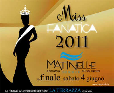 Stiamo parlando di Miss Fanatica 2011 concorso nazionale nato nel 2006 e che quest’anno vedrà la finale a Trani in Puglia il 4 di Giugno presso la discoteca sul mare “Lido Matinelle”.
