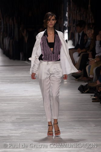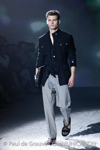 Kendall Jenner and Bella Hadid walked the runway with race-inspired looks connecting the elements of speed, style and beauty of the designer’s handcrafted vehicles with the very modern, yet timeless spirit of clothes. To heighten the experience, for the first time men wearing looks from Ralph Lauren’s Purple Label collection joined the women on a runway lined with the designer’s cars in the pristine environment of his Garage.