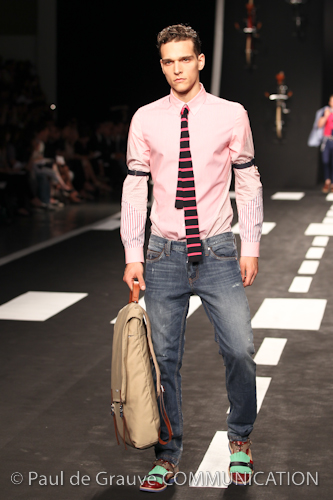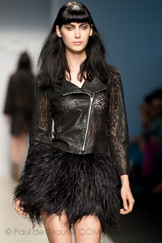 Ispirazioni africane nei marroni intensi che si accostano ai rossi nelle maxi camicie dalla linea morbida; stampe animalier per bolerini e mini dress, da portare con altissimi sandali a plateau in pelliccia. Abbandonando le tonalità calde della terra d’Africa, la collezione vira sull’accostamento di bianchi e neri, giocando con righe e motivi grafici:i mini abiti dalle linee a trapezio, total black o total white, si portano sulle ballerine nere o in pelo a stampa animalier, rigorosamente a punta, mentre l’abito lungo dai motivi geometrici richiede sandali alti con le fibbie intrecciate alla caviglia.