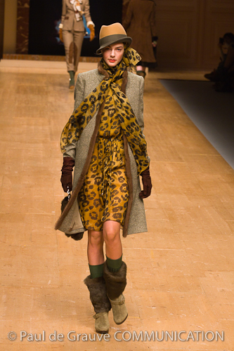La collezione primavera estate 2013 non delude le aspettative degli appassionati del marchio. L’intimità del giardino accoglie la sfilata in un’atmosfera intima dal sapore di un salotto privato nonostante riflettori e flash, proprio come si conveniva ai couturier del secolo scorso. Il romanticismo ottocentesco entra in scena da subito con le prime uscite: il nero, la trasparenza, i fiocchi, la preziosità di nastri e stringhe sono i protagonisti di deliziose culottes e bustier da vera nobildonna d’altri tempi.