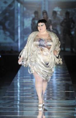 Mentre Crystal Renn complice il kaiser della moda diventava la regina delle passerelle e delle campagne (perdendo però anche parecchio peso nel frattempo, va detto, con somma delusione di chi l’aveva eletta ambasciatrice del nuovo movimento) Jean Paul Gaultier – che già in passato con Velvet d’Amour e la stessa Renn aveva dimostrato di essere amante delle forme- faceva sfilare Beth Ditto, voce dei Gossip per promuovere la sua collezione primavera-estate 2011 tutta rock e carattere.