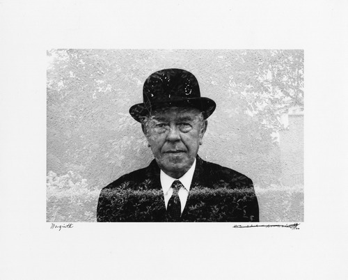 DUANE MICHALS "Portrait of René Magritte in his garden double-exposed", 1965, courtesy Admira, Milano