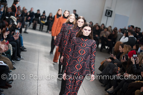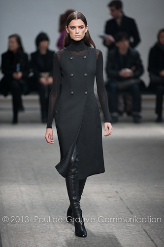 La collezione autunno inverno 2013-2014, rivive, rivisato in chiave attuale, quel tocco che è il riassunto di una eleganza decisa e seduttiva. Quattro meta-stili e linguaggi accompagnano i capi. La pelle, lavorata alla maniera byker per abiti anche sopra-sotto, tute che ricordano la seduttiva Eva Kant del fumetto Diabolik, overcoat arricchiti da originali Bells Sleeves (maniche a campana) ma anche intarsi di pelliccia per il giorno e per la sera.