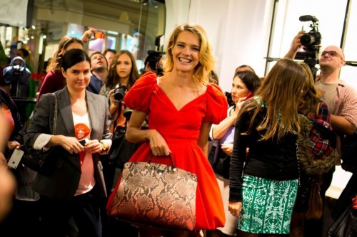 Durante la Vogue Fashion’s Night Out di Mosca la top model Natalia Vodianova è stata fotografata con la borsa Piper Lux di Furla, produttore Italiano di borse ed accessori. Il modello, in vero pitone, è stato realizzato appositamente per lei in una edizione limitata con special tag numerata e personalizzata con il suo nome. La borsa sarà in vendita esclusivamente a Mosca ed il ricavato verrà completamente devoluto in favore del Natasha Charity Fund.