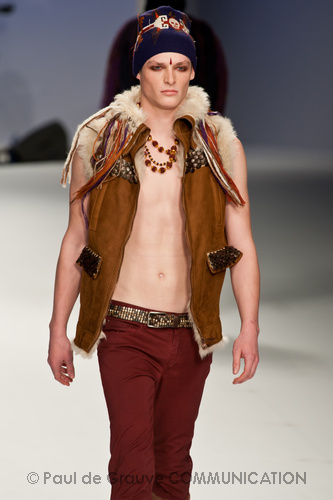 Warmth through materials: coats and cabans in vivid leather, cotton with tech nylon . Classic cut Jackets and pants in kid mohair , sweaters with palm-tree , surf , speeding car designs. Lastly the night taxis prints all over the shirts.
