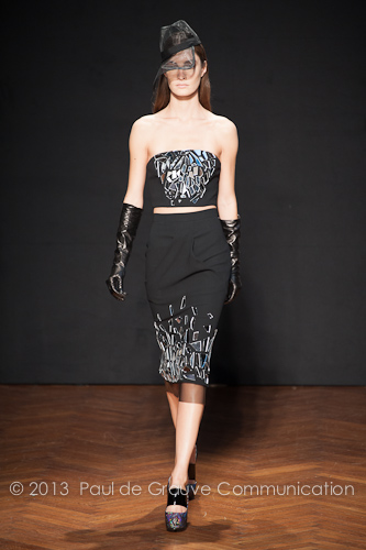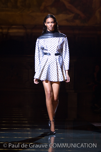 Sensuality comes through the transparency of quilted PVC trench coats and shorts worn over boxes.
