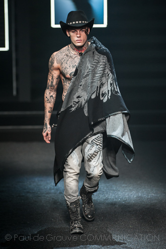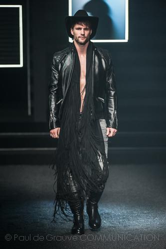 A total black look for the man Philipp Plein. The right style for a strong guy, cool and masculine, very confident, who likes to show what he has: he’s a cowboy.