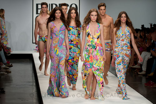 Atmosfere marine, vivaci, scanzonate; si gioca con pesciolini giocattolo applicati sulle polo di lui o stampati sui suoi micro costumi da bagno; stampe con pesci coloratissimi anche per lei, sugli abiti e sulle mini gonnelline in chiffon. Il giorno è colorato per entrambi : per lei mini abiti con o senza spalline dai colori vivaci, maglie evanescenti multicolore perfettamente abbinati su pantaloni Capri monocromatici, caftani con spacchi vertiginosi, costumi interi con stampe floreali e, immancabili nel guardaroba estivo, gli shorts.