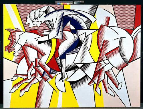 All’epoca non esisteva ancora Photoshop, ma alcuni già muovevano i primi passi verso l’innovazione grafica: Roy seppe inventare una tecnica che gli permise di di riprodurre un’opera ripresa dalla carta stampata e proiettarla su di un’enorme tela. La sua tecnica ci ricorda molto la stampa tipografica (tecnica basata