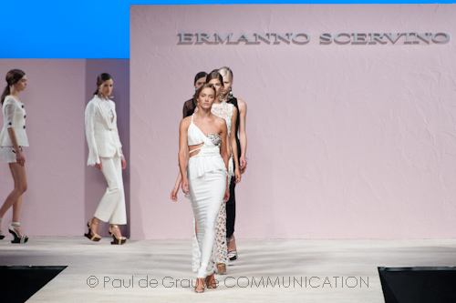 Con la consueta eleganza e l’accurata sartorialità che lo contraddistinguono, Ermanno Scervino fa della donna una paladina dello stile boho-chic nato alla fine degli anni sessanta ma reso nuovamente attuale dallo star system. La collezione primavera-estate 2013 avvicina Mediterraneo e Atlantico in un insolito ma armonico accostamento di toni, di lunghezze e di materie. La passerella inizia con un arcobaleno di colori accesi che vanno dal viola al giallo, al corallo, al fucsia, smorzandosi poi verso la fine nell’unione senza tempo di bianchi e neri.