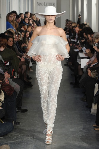 Nino Lettieri esalta l’allure di una donna elegante immaginata tra le vie e i profumi della bella Positano mentre fa ondeggiare fianchi e tessuti-piuma, come georgette di seta e chiffon, catturando gli odori e colori dei giardini d’estate nei motivi floreali degli abiti che indossa. Così si distingue Positano “Mon Amour”, la nuova collezione haute couture p/e 2012 presentata dallo stilista partenopeo presso il Conservatorio Santa Cecilia, luogo magico e importante istituzione musicale romana.