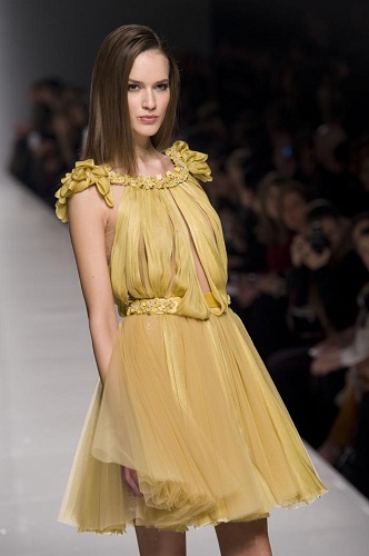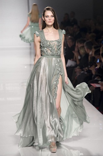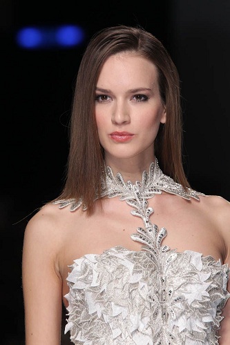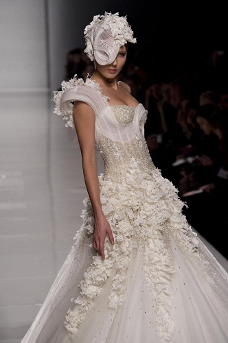 E chi non vorrebbe sposarsi con un abito come quello messo a punto dal designer libanese? Sarà anche merito degli gli studi effettuati in Francia, dei lavori per grandi firme come Dior e Chloé, ma resta ancora inspiegabile come riesca a generare un’immagine femminile tanto aristocratica. Lo charm di una donna che si appresta pronunciare il fatidico sì è evidenziato da un delizioso cappellino che ricorda i fasti di Versailles.