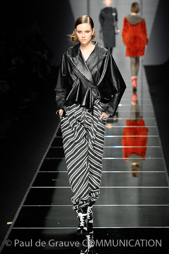 Si gioca sulla contaminazione di formale e sportivo: bluson, in maglia di seta o in visone rasato effetto velluto, si indossano come felpe; corpetti imbottiti in lana, nappa e seta ricordano l’abbigliamento di uno schermitore.