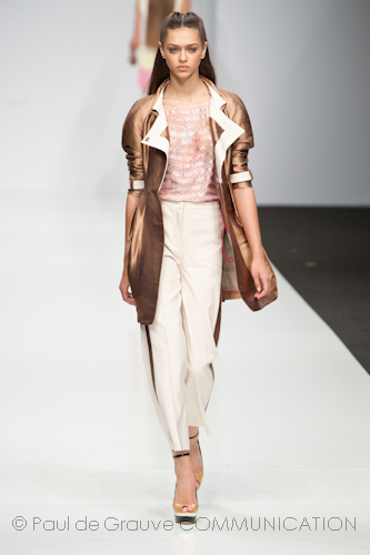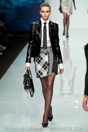 Le modelle sfilano tutte con una frangetta ed il capello liscio che le rendono tutte un po’ il clone di Donatella Versace.