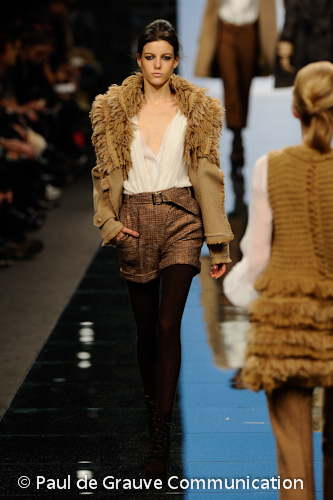 C’è Anna Wintour in prima fila ma la sfilata parte con il canonico ritardo, mostrando uno stile sexy rock regale che seduce in un’atmosfera dark.